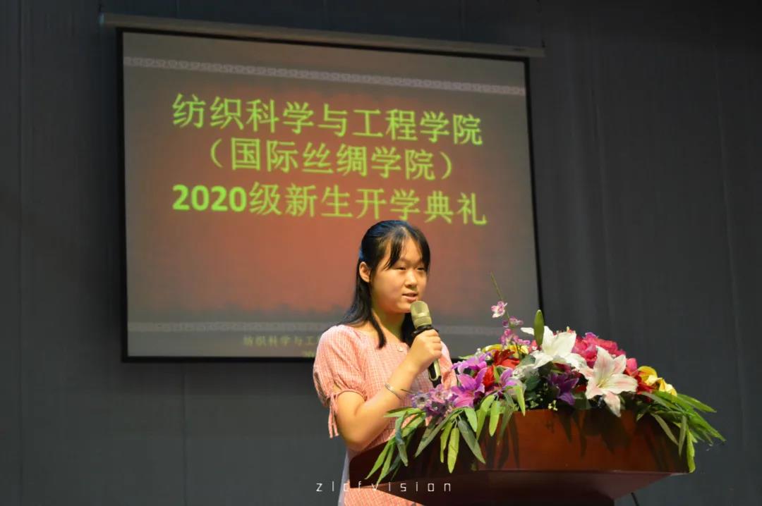 然后是老生代表18级硕士研究生余月琳发言,她向学弟学妹们介绍了自己的科研心得,鼓励新生勤于思考,敢于创新,在大学里成长为更好的自己。20级纺织轻化工程研究生邢宇声作为研究生新生代表发言,他结合自身的考研心路历程,表达了在未来读研阶段奋发进取,勇攀科研高峰的信心。20级本科新生钱玉仙作为新生代表发言。她感谢了学院领导对于新生的关心,谈到了自身从高中生到大学生身份的转变,会更好地珍惜学院的教学资源和师资力量,为争做新一代优秀的纺织人而努力。