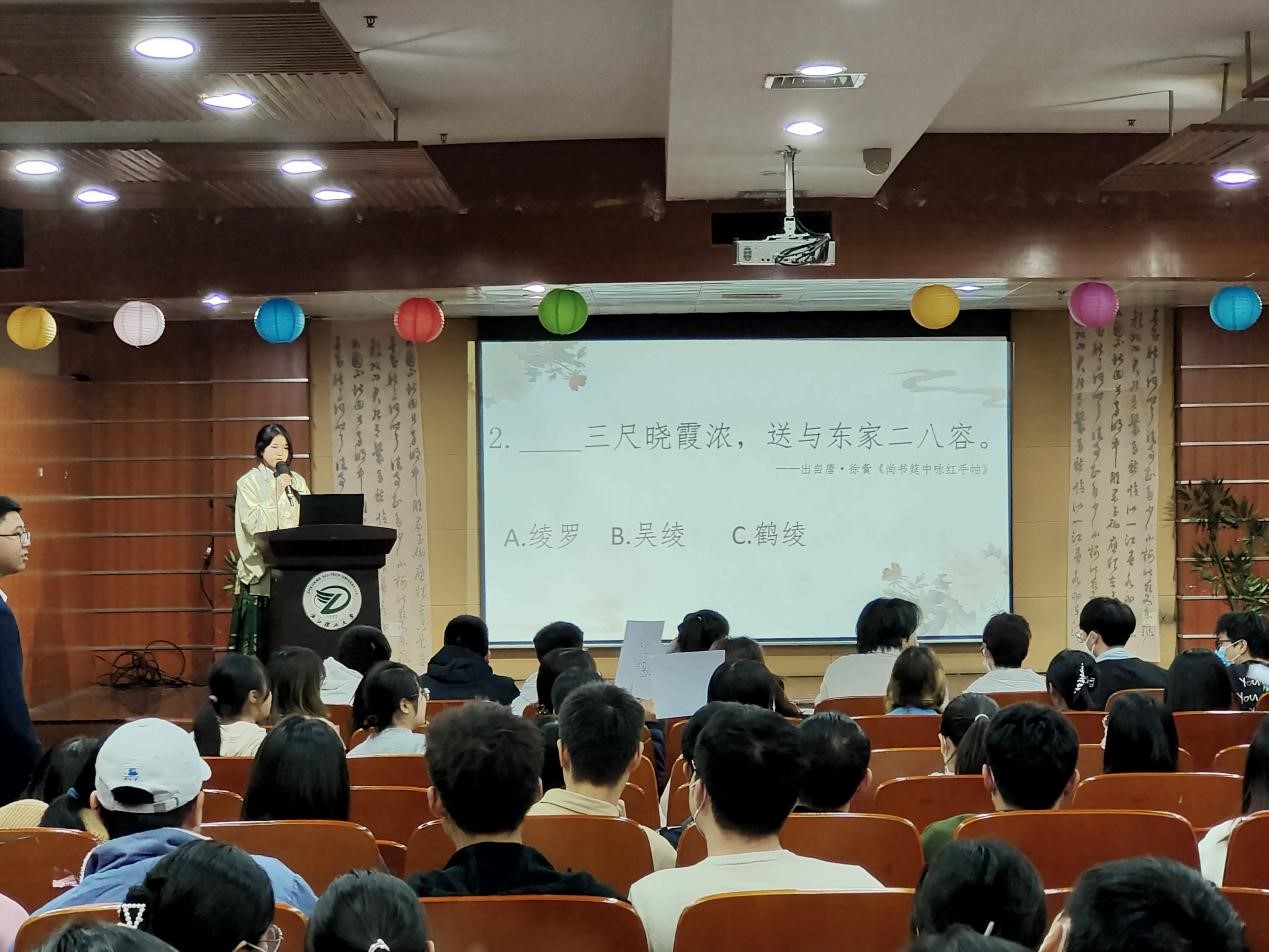 活动筹备负责人袁紫琳老师做了总结发言,她指出,丝绸和诗词有着异曲同工之妙,本次活动是始业教育“五彩蚕丝”的重要构成,旨在通过比、学、赶、悟的方式,领略丝绸文化对中华文明的作用力。对于纺织学子而言,在学好本专业的同时,以积极探索的精神去追寻丝绸文化的魅力,增强丝绸文化的传播,坚持文化自信、践行文化自觉,为丝绸文化和纺织产业的发展贡献青春力量,这也是贯彻党的二十大精神的实践要义之一。