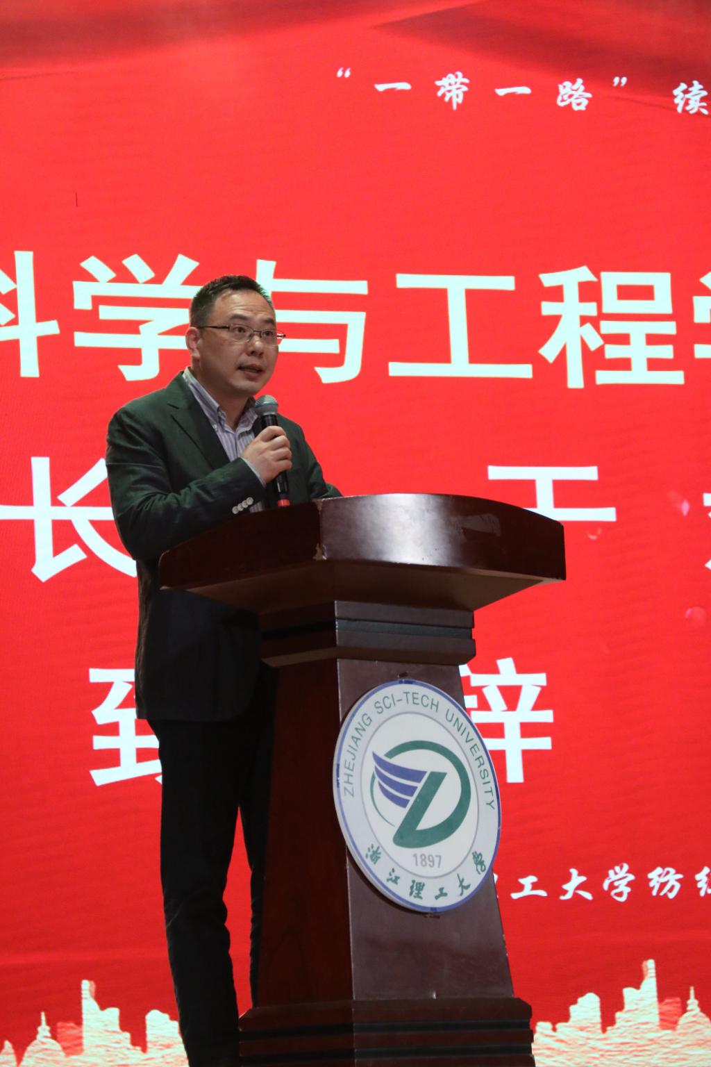时值“一带一路”倡议提出10周年,全国上下深入推进学习贯彻习近平新时代中国特色社会主义思想主题教育,纺织(丝绸)学院一体推进学生文化发展需求和“国之大者”教育,于5月23日晚,在学校大剧院举行2023届毕业生毕业典礼暨“一带一路”文化主题汇演。国际丝绸联盟名誉秘书长费建明、浙江信伊达实业股份有限公司董事长顾新荣、国际丝绸联盟秘书长李启正作为行业代表受邀出席典礼,学院党政班子和全体毕业生班主任、辅导员参加活动,活动采用“线上+线下”相结合的方式举行。 典礼在庄严的国歌声中拉开序幕。学院院长于斌致辞,他寄语毕业生们要勇于担当,把研究、论文、工作扎根到国家、扎根到百姓中;要奋进求实,要沉下心、俯下身、迈实步,才能走得安心、跑得稳定;要沉心静气,聚焦自己的人生目标,不忘初心的闪耀。
