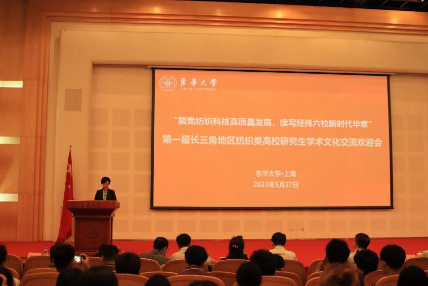 为全面贯彻落实党的二十大精神以及长三角一体化发展重大战略,深入开展学习贯彻习近平新时代中国特色社会主义思想主题教育,纺织(丝绸)学院与东华大学、苏州大学、江南大学、南通大学、安徽工程大学五所院校的纺织类学院,共同举办第一届长三角地区纺织类高校研究生学术文化交流会,5月27日该活动在东华大学拉开帷幕。东华大学副校长陈革、长三角G60联席办副主任、G60创新研究中心主任贾占锋出席并讲话,发起单位的200余名师生代表参加,学校纺织(丝绸)学院党委副书记方平携辅导员胡万里、袁紫琳以及研究生代表参与活动。