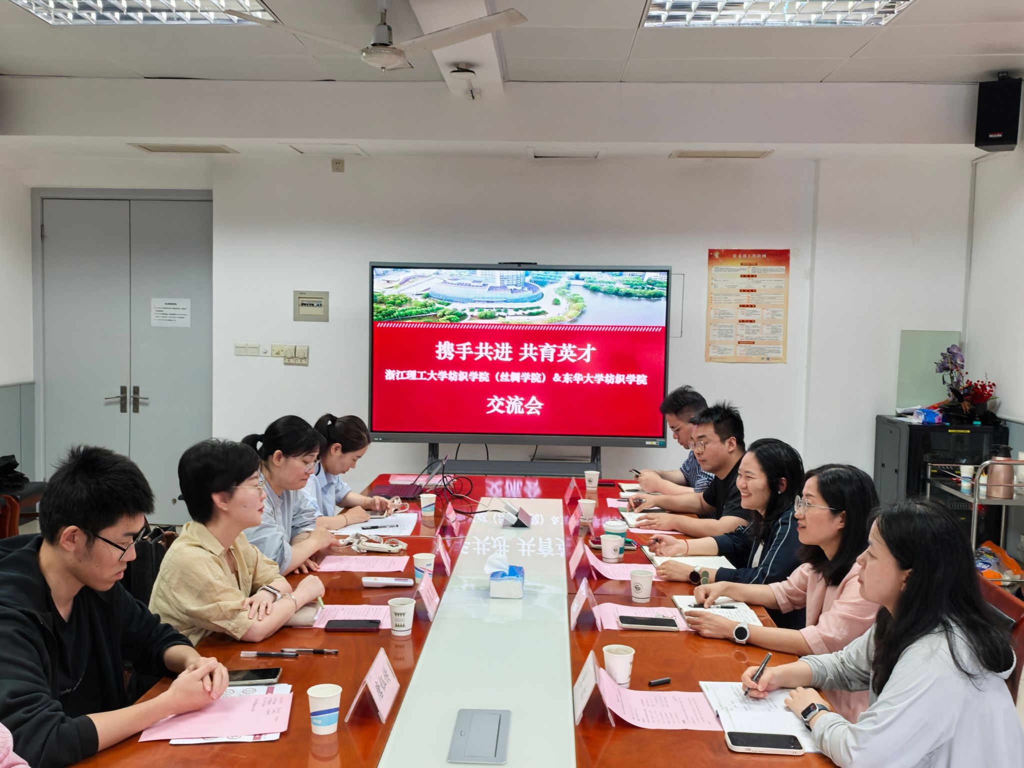 党委副书记、纪委书记张孝凤率学工办本研辅导员赴东华大学纺织学院开展学生工作交流会。东华大学纺织学院党委副书记寿晨燕及学院学工团队成员出席会议,双方围绕学风建设、创新创业、科研竞赛、导学关系以及深造就业等议题展开对话。