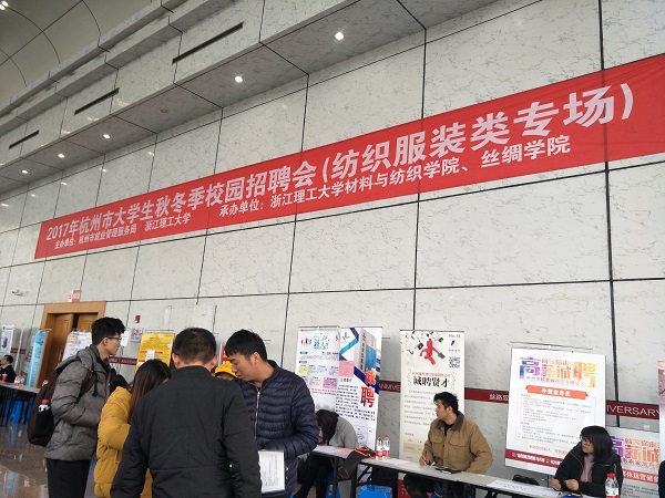 12月13日,材料与纺织学院、丝绸学院承办的2017年杭州市大学生秋冬季纺织服装类校园招聘会于浙江理工大学体育馆二楼成功举办,来自全国各地的160家用人单位携千余就业岗位参加本次招聘会。招聘会现场共吸引了来自我校材料与纺织学院、丝绸学院和服装学院等学院的数百名应届毕业生参加。
