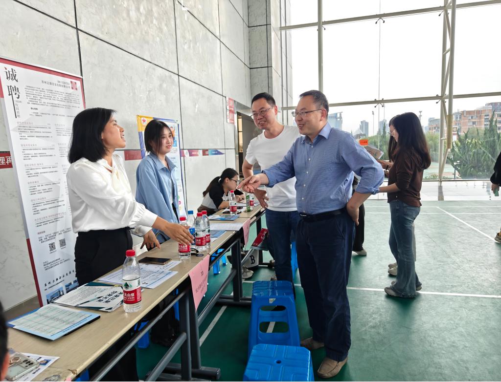 为深入贯彻落实党的二十大关于“实施就业优先战略”的重要部署,深化校企协同 聚焦人才 助力先行育人理念,推动学院2024届毕业生高质量充分就业。11月3日,由浙江理工大学纺织科学与工程学院(国际丝绸学院)、材料科学与工程学院主办,浙江省纺织印染助剂行业协会、浙江省印染行业协会、以及浙江省纺织印染助剂相关行业共同协办的2023年浙江省纺织材料、印染、助剂相关行业及校友企业招聘会在浙江理工大学体育馆二楼正式举行。学院院长于斌、党委副书记方平与各系教师代表前往招聘会开展当前纺织行业的人才需求调研和校企合作的深入洽谈,就业班主任、辅导员一同参加。