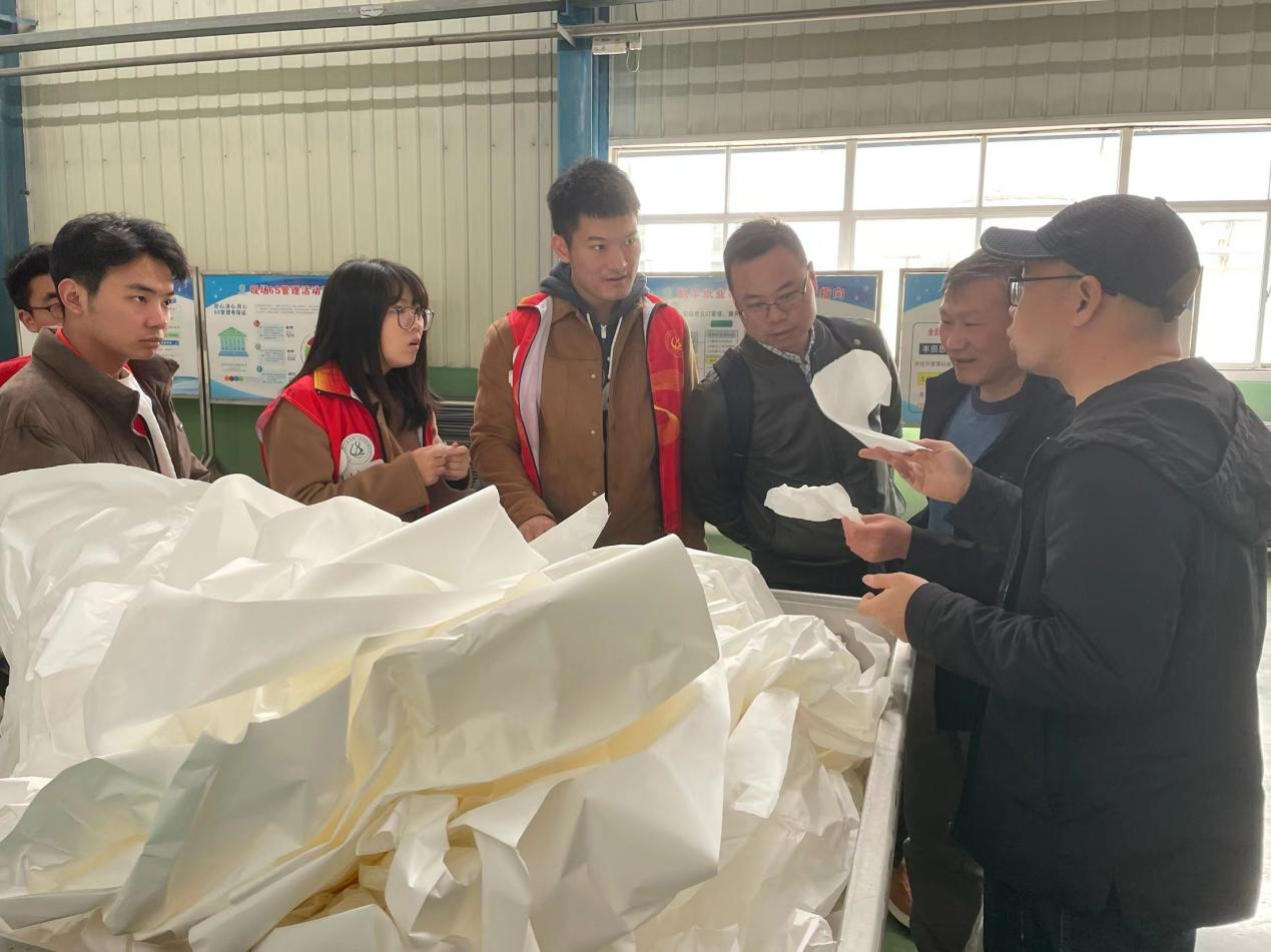 造纸行业是龙游县经济发展的重要源动力,与学院有着较为深厚的合作基础。上午,学院一行参观并调研了龙游县国家级高新技术企业浙江凯丰新材料股份有限公司。企业优秀校友代表、全国五一劳动奖章获得者刘佳文向学院来访一行人介绍了公司造纸业务的发展和未来人才需求,方平介绍了学院开展“沿着足迹走浙江”的现实意义以及近年校企地合作成果。校企双方深入企业车间了解造纸工艺,就访企拓岗、人才培养以及科研协作等方面互相建言。部分研究生党员现场投递求职简历,与企业达成初步意向。
