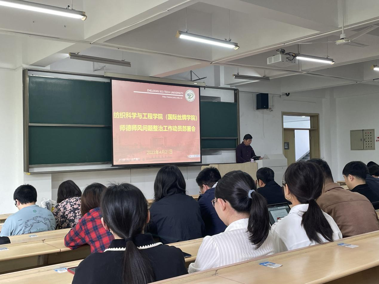 而后,学院开展师德师风问题整治工作动员部署会。徐伟强传达了学校有关师德师风工作会议精神和工作要求并围绕近期公开曝光的典型案例进行警示剖析。他指出在党的二十大报告中提到要加强师德师风建设,培养高素质教师队伍,弘扬尊师重教社会风尚。他提醒各位教师要重点研读《新时代高校教师职业行为十项准则》,划好“红线”,守牢“底线”,筑实“防线”,营造学院良好的师德师风氛围。