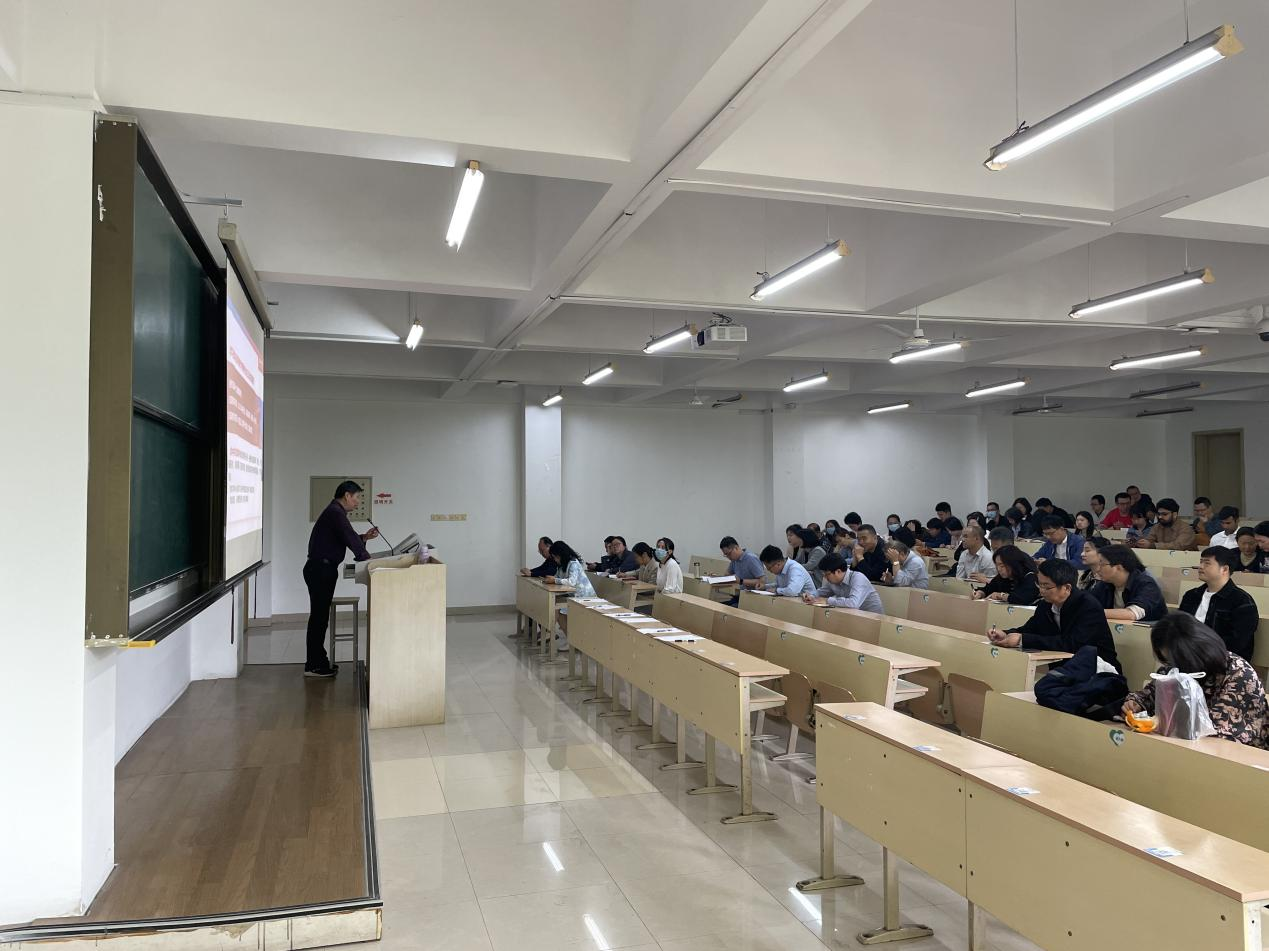 在3N101教室召开全体教职工大会。学院党政领导班子成员以及各办公室系所全体教职工参加本次大会,会议由院党委书记徐伟强主持。