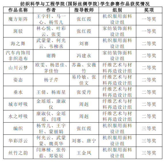 11月4日,由中国纺织服装教育学会主办,绍兴文理学院、绍兴市柯桥区中国轻纺城建设管理委员会和绍兴市纺织工程学会承办,浙江东进新材料有限公司赞助的“东进杯”第十五届中国高校纺织品设计大赛已圆满结束。本次大赛,91国产