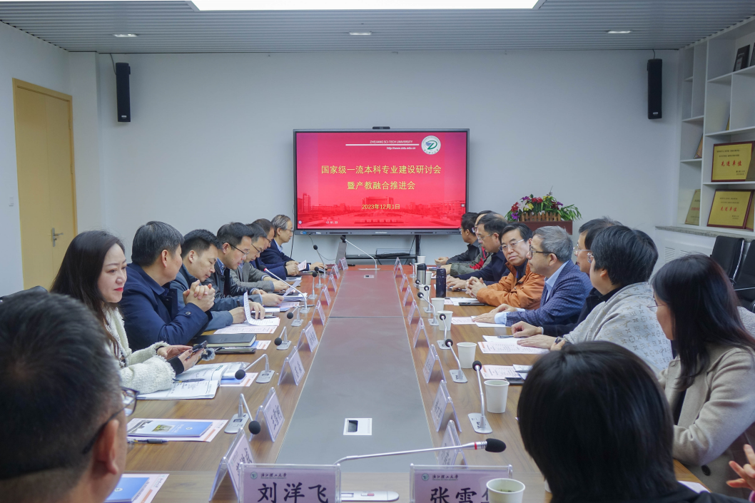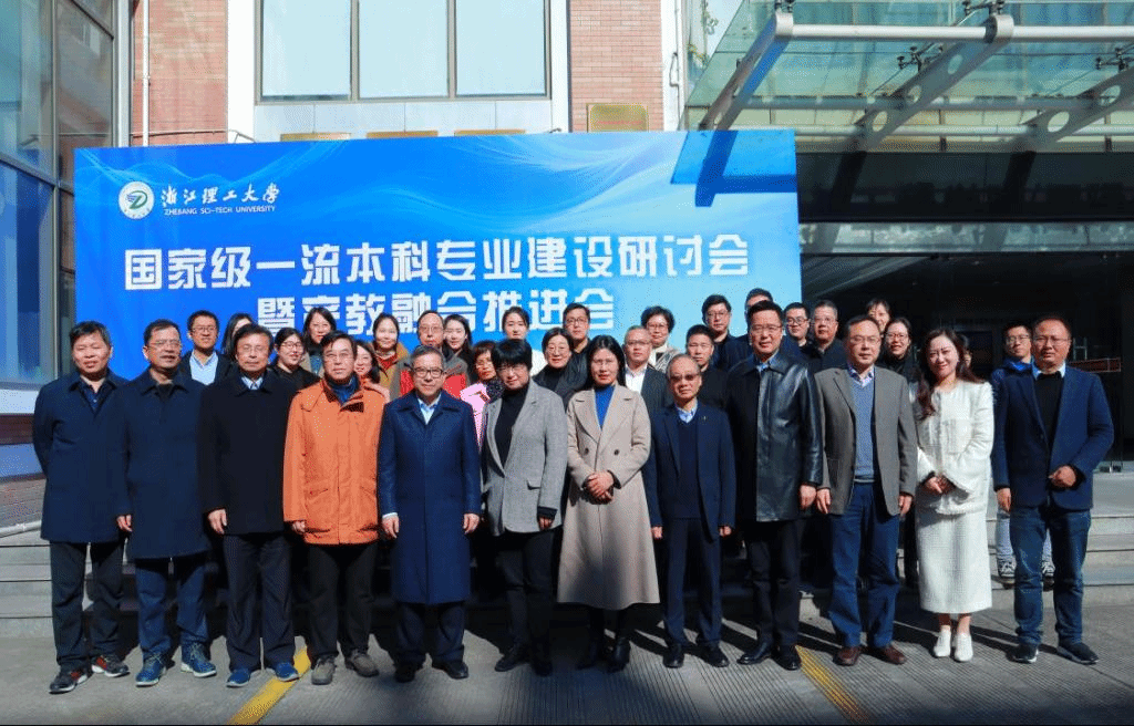 国家级一流本科专业建设研讨会暨产教融合推进会成功召开。会议邀请了中国纺织服装教育学会会长倪阳生,国务院学位委员会纺织学科评议组成员、教育部高等学校纺织类专业教学指导委员会委员潘志娟教授,教育部纺织类专业教学指导委员会副主任委员王瑞教授,教育部纺织类专业教学指导委员会秘书长郭建生教授,原教育部纺织类专业教学指导委员会副主任委员陈建勇教授,浙江省轻工业品质量检验研究院党委委员、副院长楼才英,纺织企业家代表等莅临指导。浙江理工大学副校长陈爱喜教授,纺织学院党委书记徐伟强教授、院长于斌教授、副院长苏淼教授、副院长吕汪洋教授出席,一流本科专业建设点负责人、各系主任和骨干教师等参加了会议。会议由浙江理工大学教务处处长王尧骏主持。