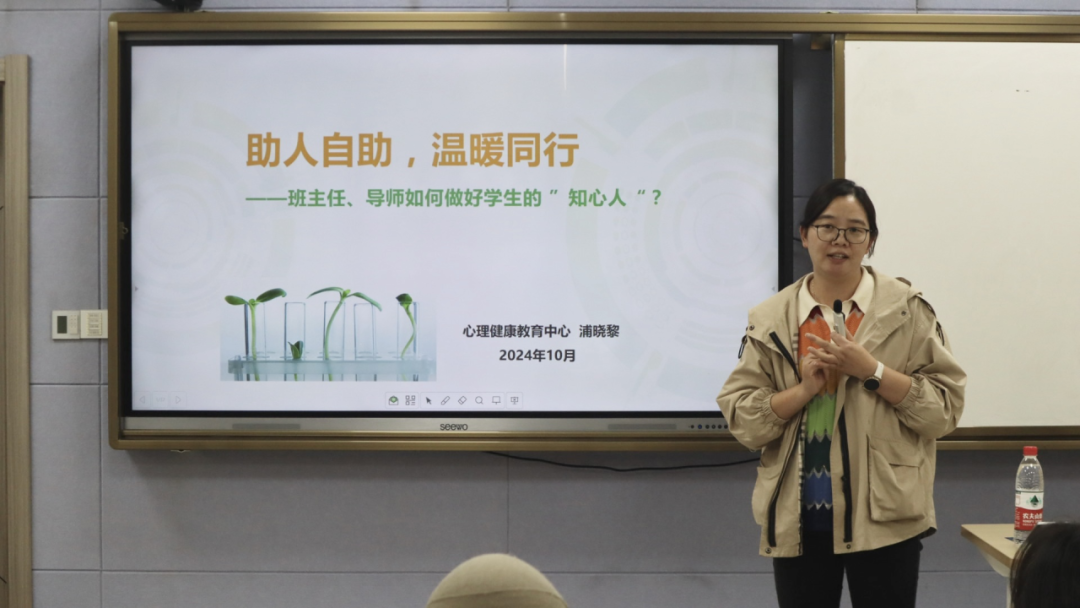 本次培训以“助人自助 温暖同行——如何做学生的知心人”为主题,特别邀请国家二级心理咨询师、校心理健康教育中心主任浦晓黎老师开讲,学院新生班主任、新晋研究生导师、助理导师等参加本次培训。