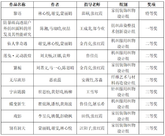 纺织科学与工程学院(国际丝绸学院)学生参赛作品获奖情况