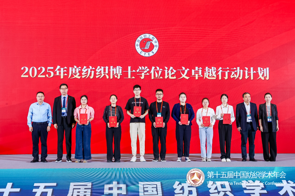 有超过30名师生参加本次年会,多名师生还登上颁奖舞台,展现出昂扬向上的精神风貌。余厚咏老师和刘国金老师荣获2025“中复神鹰”纺织青年科技奖,戚栋明老师荣获2025纺织产业创新奖,陈露敏同学(指导老师:余厚咏)的毕业论文入选2025年度纺织博士学位论文卓越行动计划,樊莎同学(指导老师:郭玉海、刘国金)的毕业论文入选2025年度纺织硕士学位论文卓越行动计划,刘琳同学(指导老师:朱斐超)的学术论文入选第26届陈维稷论文卓越行动计划入围并入选论文,王思思同学(指导老师:刘国金)的学术论文入选第26届陈维稷论文卓越行动计划入围论文。以上荣誉和奖励是对91国产
