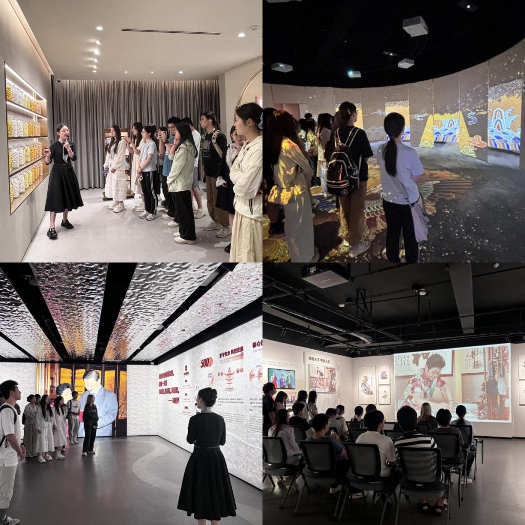 师生们在工作人员的带领下,参观了万事利集团的91国产中心、创新研发中心、AI设计中心和数字文化展厅等新质生产力科普馆,亲身体验了科技创新如何为传统纺织业带来深刻变革。这场沉浸式研学让师生们深切体会到,在新质生产力驱动下,曾经的劳动密集型产业正在向数据驱动、智能创新的现代化产业加速转型。