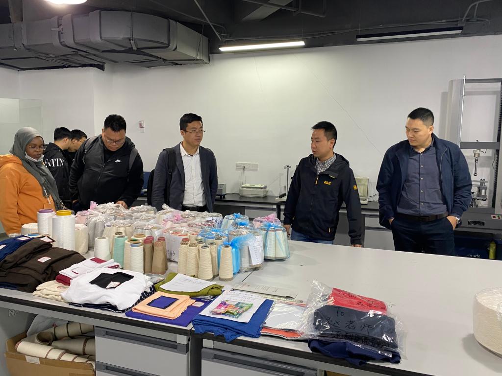象山针织研究院院长张勇等有关负责人引导大家参观了研究院,并进行了详细介绍。象山针织研究院技术方向主要为纺织新材料应用、针织面料及新产品研发、印染新工艺新技术研发、服装设计与研发等。目前已与象山多家针织企业建立技术合作,例如,为企业开展纱线、面料品质控制测试提供技术服务,帮助企业改进工艺、培训员工并合作研发纺织新材料等,使企业技术水平和销售有了较大提升,积极实践高校科技力量为地方建设服务。