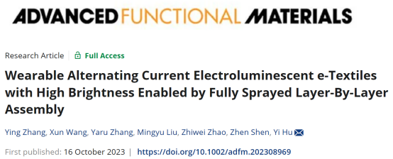 浙理工胡毅教授团队《Advanced Functional Materials》:全喷涂逐层组装实现可穿戴电子织物高亮电致发光