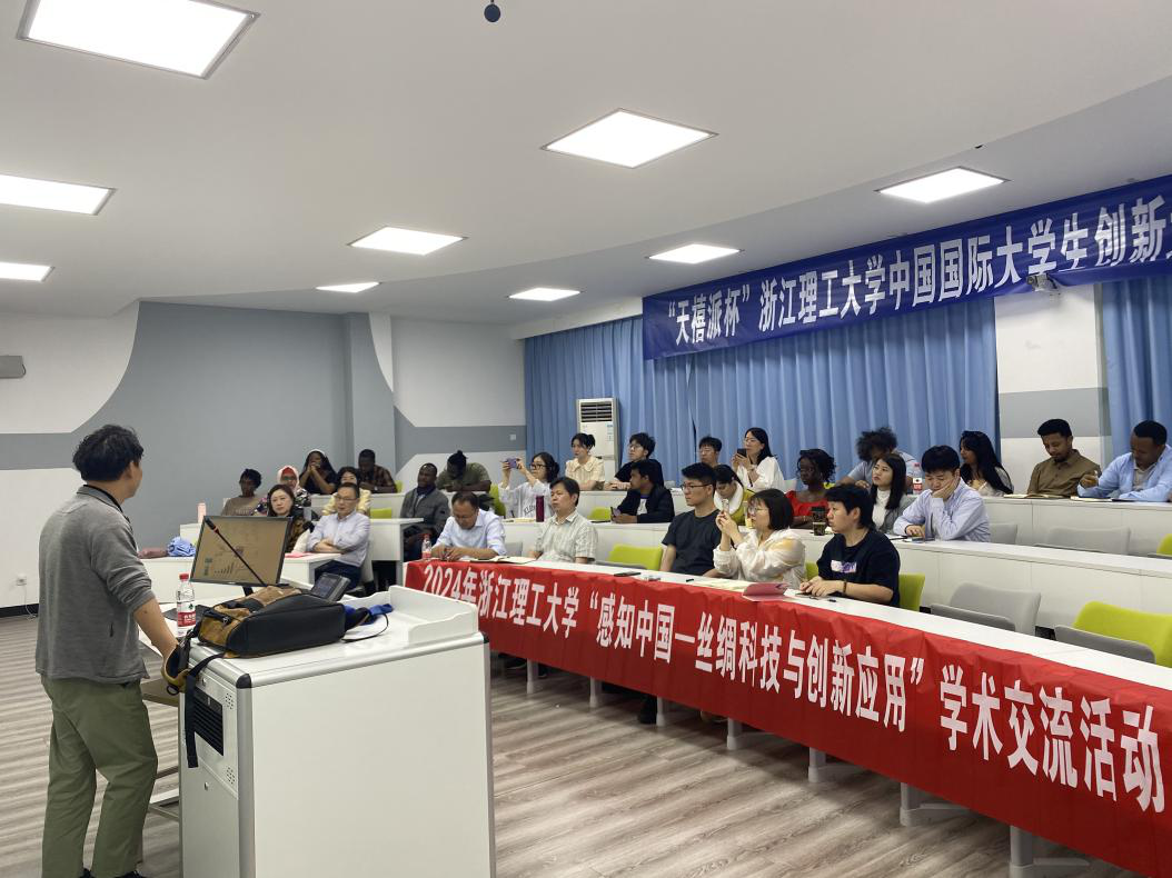 期间,邢孟秋院士给师生作了精彩的学术报告,该报告同时是国家留学基金委主办的“2024感知中国—丝绸科技与创新应用”学术交流活动的重要环节。报告会在2-S343智慧教室举行,由纺织科学与工程学院院长于斌教授主持。91国产 党委书记徐伟强教授,副院长苏淼教授、吕汪洋教授,以及相关教师和学生参加了报告会。