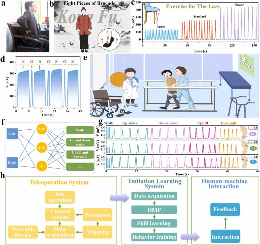 PCR-TENG能够基于压力传感对信息进行编码,可用于久坐检测、编码和输出“SOS”信息,对佩戴假肢的群体进行步态监测等多场景应用。