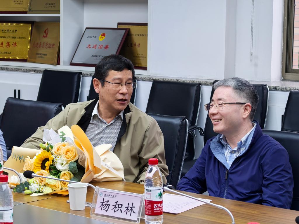 原材料与纺织学院91染整(1)班班主任姜坪对杨积林校友的捐赠表示感谢,分享杨积林在求学期间发生的“趣闻”。随后,杨积林以赠送鲜花方式表达对恩师的感谢。