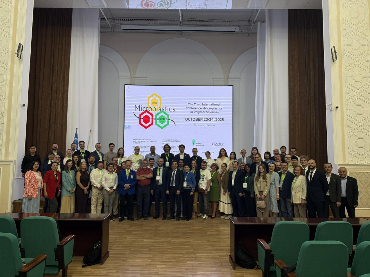 第三届国际“聚合物科学中的微塑料”会议于2025年10月20-24日在乌兹别克斯坦历史名城撒马尔罕顺利召开。本届会议由俄罗斯科学院、乌兹别克斯坦科学院、浙江理工大学等多家权威机构联合主办,议题广泛覆盖微塑料的表征分析、环境迁移、生物效应、污染治理及可降解聚合物开发等方向,致力于搭建聚合物科学与环境科学交叉研究的国际高端平台。