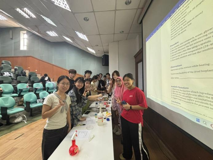 在经历了一周的语言环境适应后,第二周正式展开专业知识的课程,对化学、物理学、材料学等学科进行系统的学习,这也是此次访学的重点内容。专业学习对同学们而言颇具挑战性,专业名词的英语理解、每个老师的独特的讲课风格和口音习惯、学习内容的广泛发散,每一个因素都在考验着各位同学们,尽管如此,同学们依旧卯足劲汲取宝贵的知识。同学们除了听讲,还积极同讲课教授接触学习和互动,主动上台表达,共同展开实验(可降解塑料DIY)与撰写报告,完成小组展示。相信每一个同学都在这一周里收获了极大的成长,也与马来亚大学结下了愈发深厚的感情。