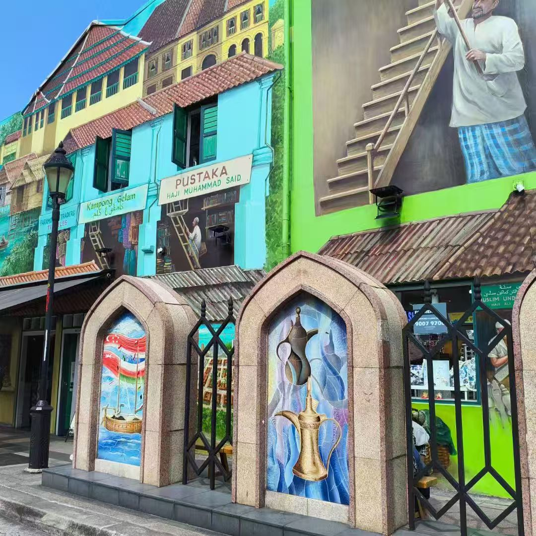 踏上新加坡这片土地,首先感受到的是其独特的文化融合魅力。同学们通过系统性参访,深入了解了这座城市的多元文化生态:牛车水的中式牌楼与红灯笼延续着传统中华文化的血脉;小印度缤纷的纱丽店和香料市场散发着浓郁的南亚风情;甘榜格南的金顶清真寺和阿拉伯风情街巷见证着马来文化的传承。这种多元文化的和谐共生,不仅体现在建筑风格上,更深入到了市井生活的肌理中。在参访亚洲文明博物馆时,海上丝绸之路的历史文物和贸易史料,让同学们直观感受到了文化交融对现代文明发展的深远影响。