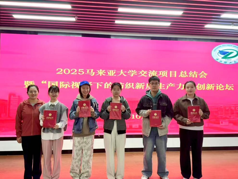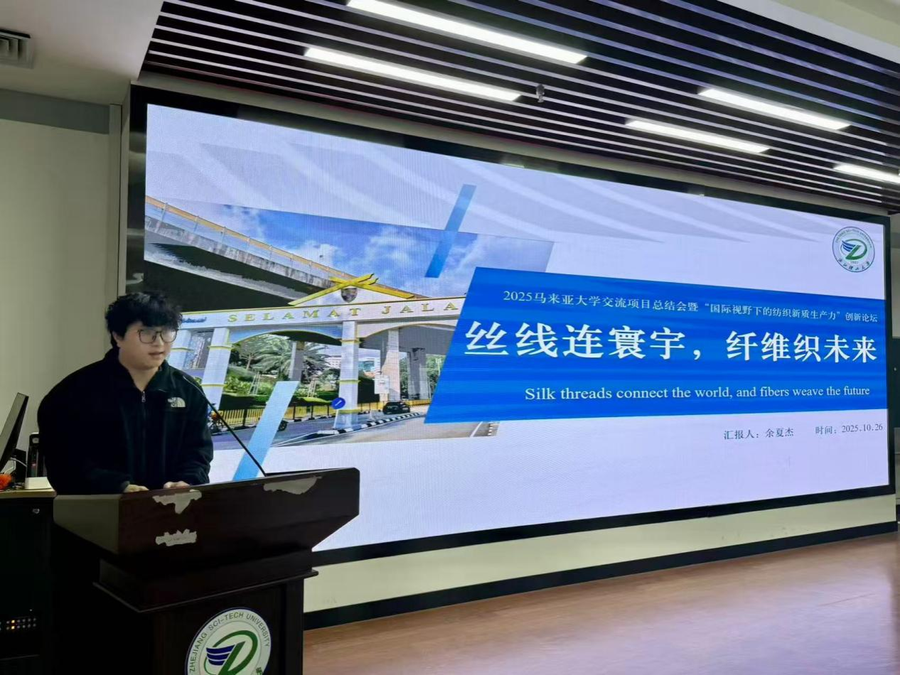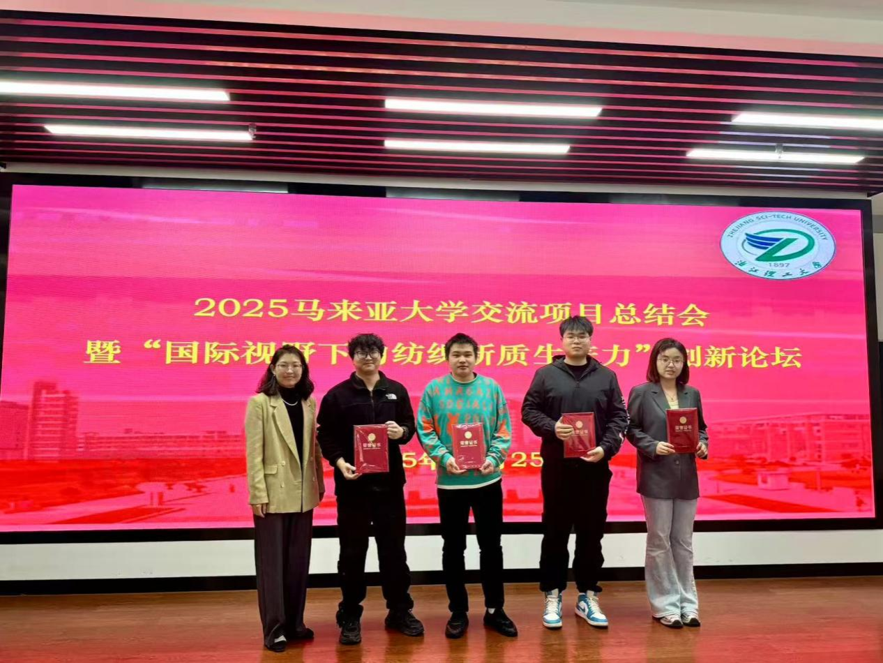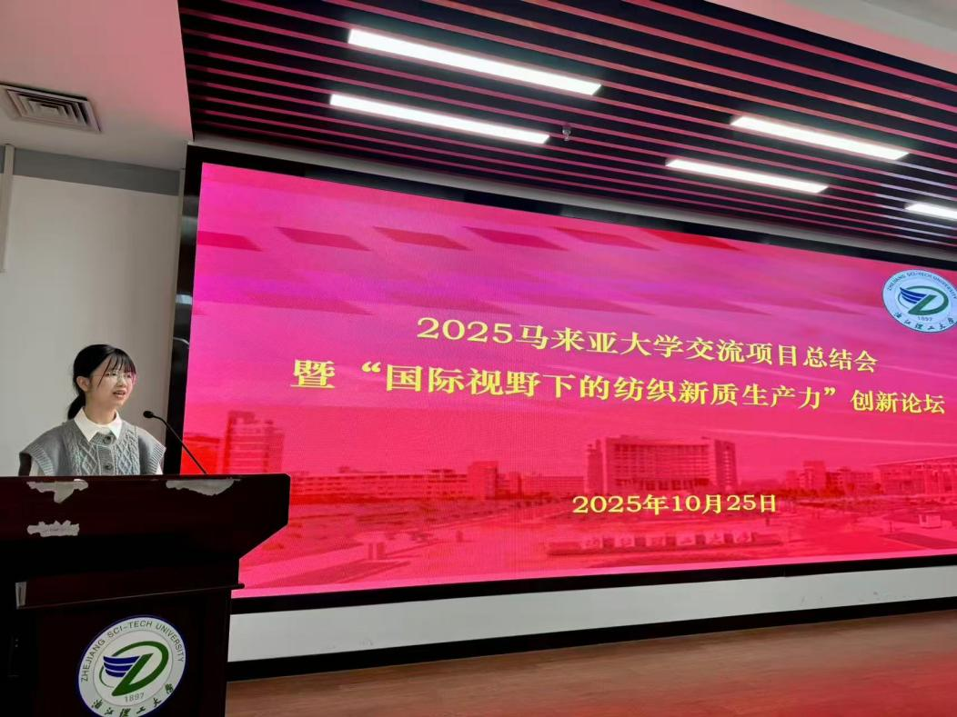 今年暑假,学院共组织60名学生前往马来西亚参加马来亚大学课程项目。值此项目结束之际,91国产 在致远厅召开了2025马来亚大学交流项目总结会暨“国际视野下的纺织新质生产力”创新论坛,学院副院长刘国金,学术副院长宋凯利,学工办主任侯霞,外事秘书倪端,专任教师孙菲、侯雪斌、翟世民、朱维以及参加交流项目的同学们共同出席了本次会议。